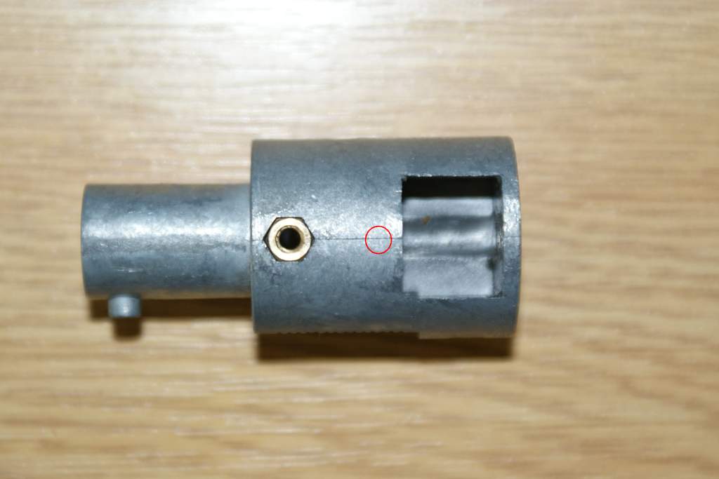 Nazdar, foto bohuzial nemam, už to tam mám napasované. V podstate bohato staci aj plech hrubky 1mm, ovinies ho okolo novej komory, napasujes a zaistis srobkom und ist das. Povodna komora ma zavit nalavo, Aspro L96 komora na mieste cerveneho kruzku - treba vyrezat novy. Druha foto (cerveny obdlznik) ukazuje praskliny na povodnej komore, je to spinave od vazeliny. Cize jedina vec. co je treba spravit, je vyrezat novy zavit + zohnat/vyrobit stelovaci krúžok.