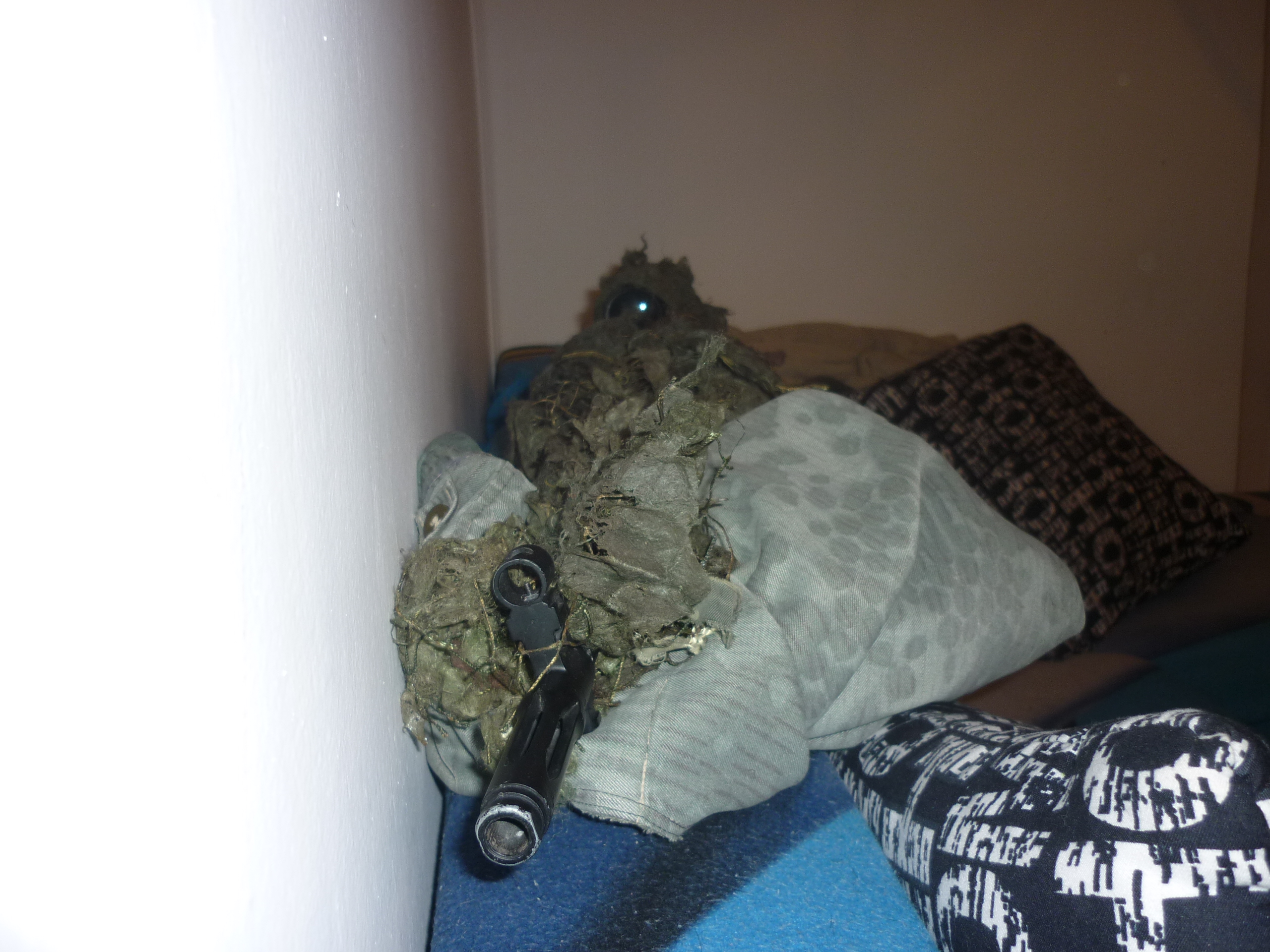 Rozborka, kompletace, první testy. Bude ještě hodně ladění jak na venek a vnitřek  Cenu jsem zatím nekalkuloval ale plno peněz padlo na věci které na konec nebyli potřeba a nebo neobstáli nebo se zničili při testu. Tak nepříjemné poškození madbull hlavně 6,03 jsme museli dát zpět netěsnou základní hlaveň 6,07+- S MB naměřeno 185+- 4m/s 0,43 guma základ nějak moc netěsněno. Součastnost v základní hlavni je AT gumička red, ale budou se zkoušet i jiné typy než se najde ta pravá například PDI. Gumička bez použití teflonu je možné ze někde bude pofukovat. I tak výsledky jsou přijatelné +- 3m/s. bohužel měřeno jen s gramáží 0,43 Dnes ještě dám jednu fotku udělám na zbraň nějakou kamufláž zítra ji čeká test v akci, i tak jí ještě čekají úpravy