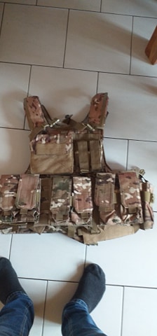 Taktická vesta - velikost nevím a značku nemůžu najít (mám 175 cm a 77 kg a musel jsem sundat 2 sumky abych zapnul), taky bez poškození
