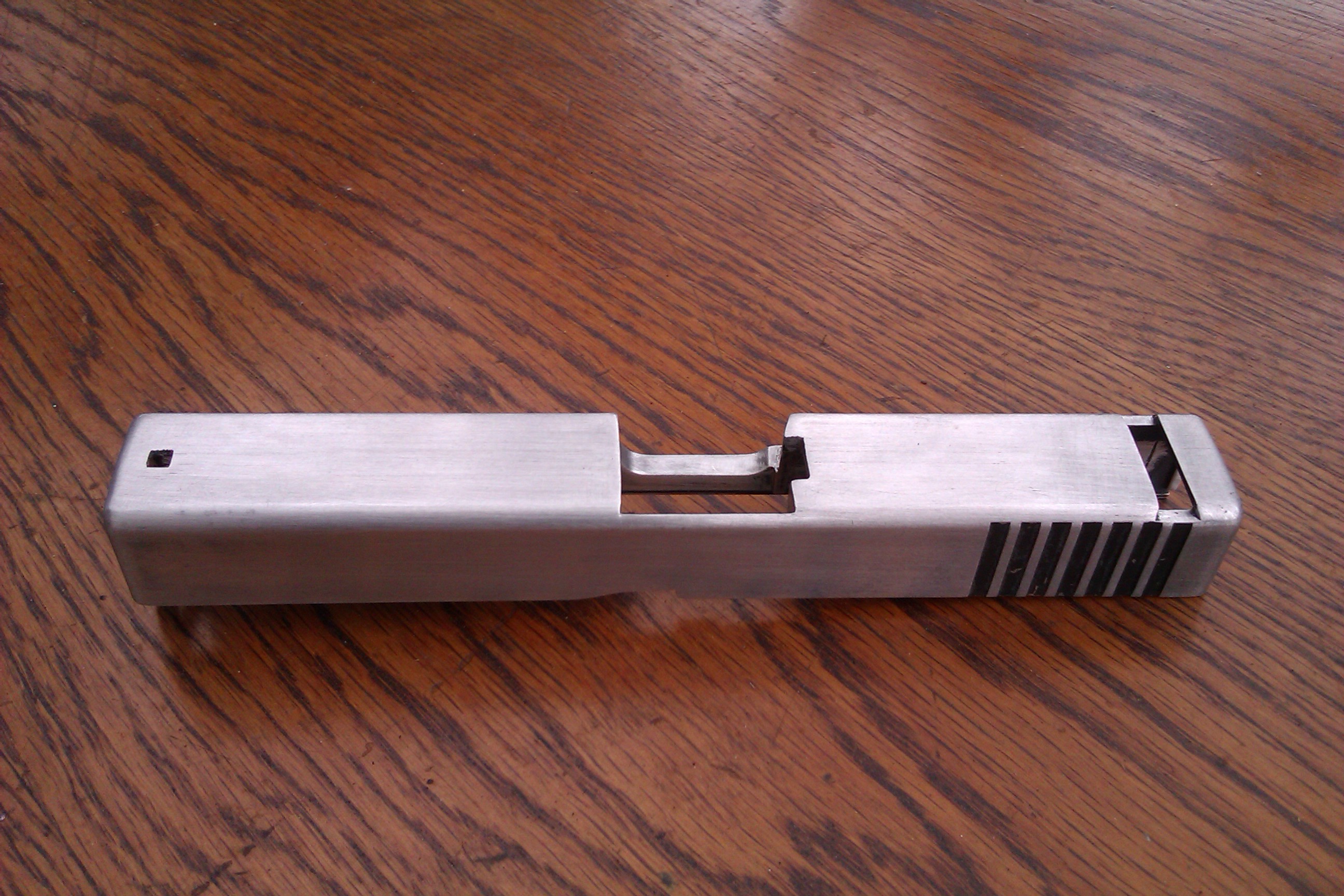 "Nový" záver mal dosť nevkusne oškrabanú povrchovú úpravu tak som ho úplne vybrúsil do strieborna. -> s Farbou som odstránil aj značenie na závere.