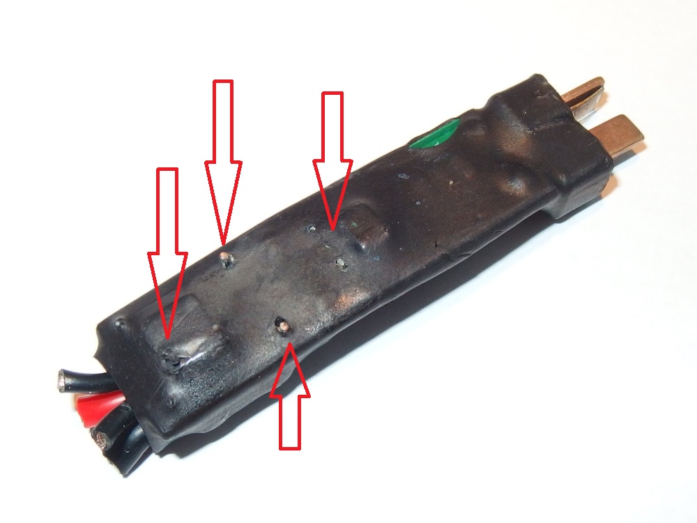 Jo jo v šak v pohodě. Narovinu říkám, že mě funguje bezproblémů. Mě jen zarazilo, že byly vždy problémy při použití 11,1V lipolky. Hele tu spálenou procesorovku zasílám jen sem jí natvrdo ustřihl od kabeláže, tak že pokud tam bude něco špatně či nekvalitně zapojeno lehce zjistíš. Určitě sem dej pak foto případného problému kdyby se tam objevil.