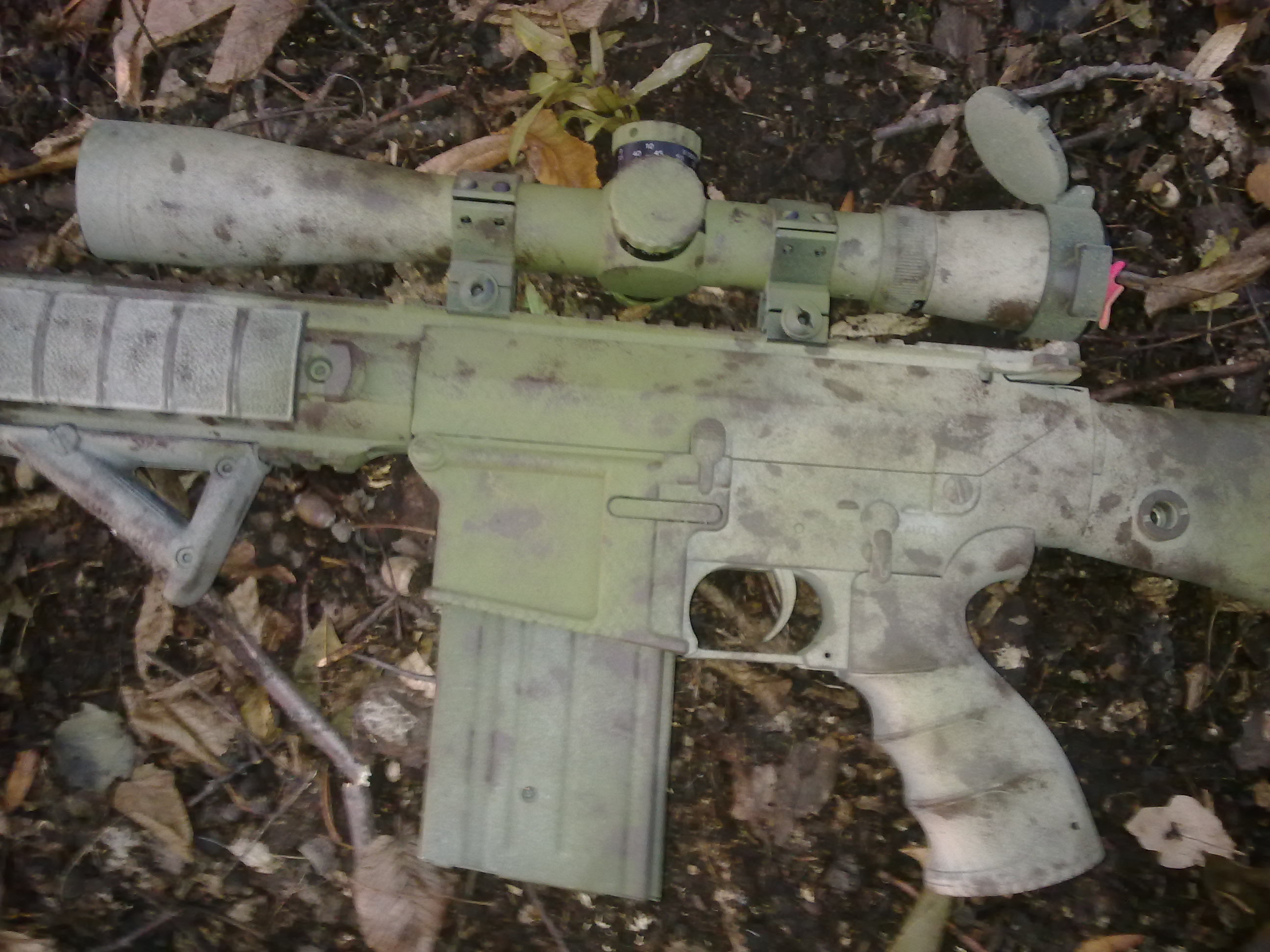 Zdravím Jen přihodím fotky prvního nástřiku zbraně. Je to stříkané obyčejnýma barvama ve spreji a přelepené maskovací kobercovkou. První pokus o přestříkaní zbraně a přidávám i fotku jak vypadala před. Fotky zde http://websygnity.rajce.idnes.cz/L96Pište co se Vám líbí/nelíbí ať vím co udělat lépe. Díky.