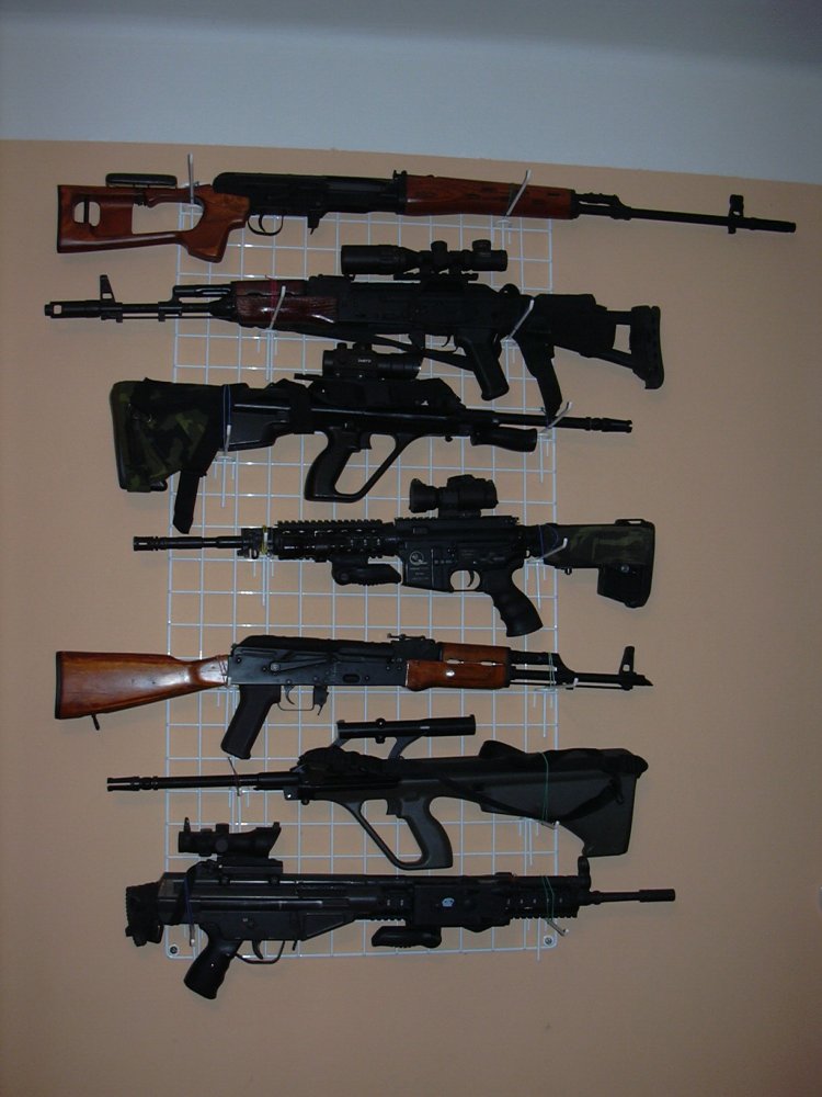 Taky teď řěším podobný problém, ještě mám nějaké vzduchovky. Takže už nevím kam s tím. Mám s nimi dohromady 8 dlouhý kvérů a je jen otázkou, kdy přibudou další.. Já přemýšlel o klasickém držáku na zbraně, kde jsou zbraně na výšku jedna vedle druhé a stojí na pažbách. Ale taky to zabere dost místa..